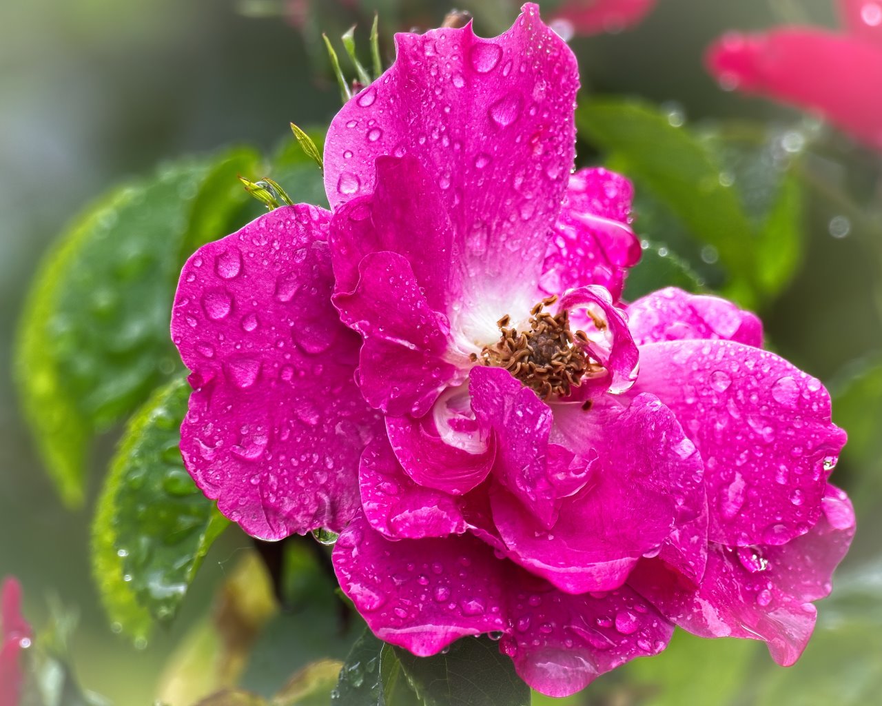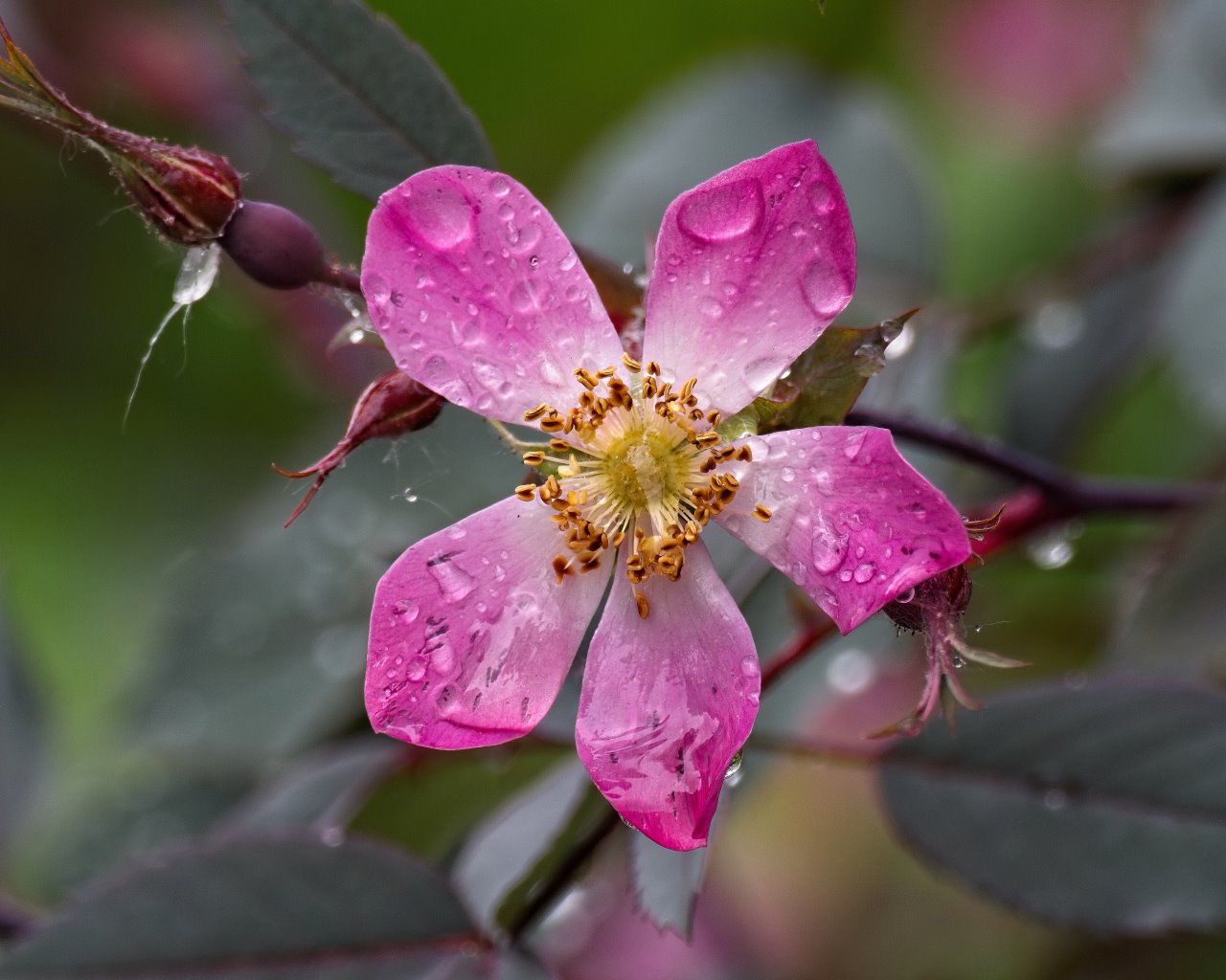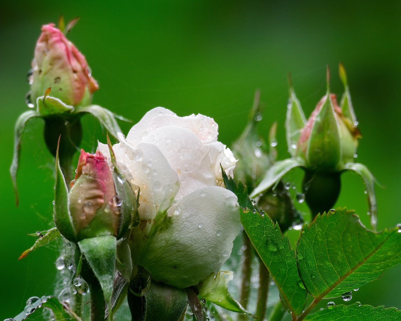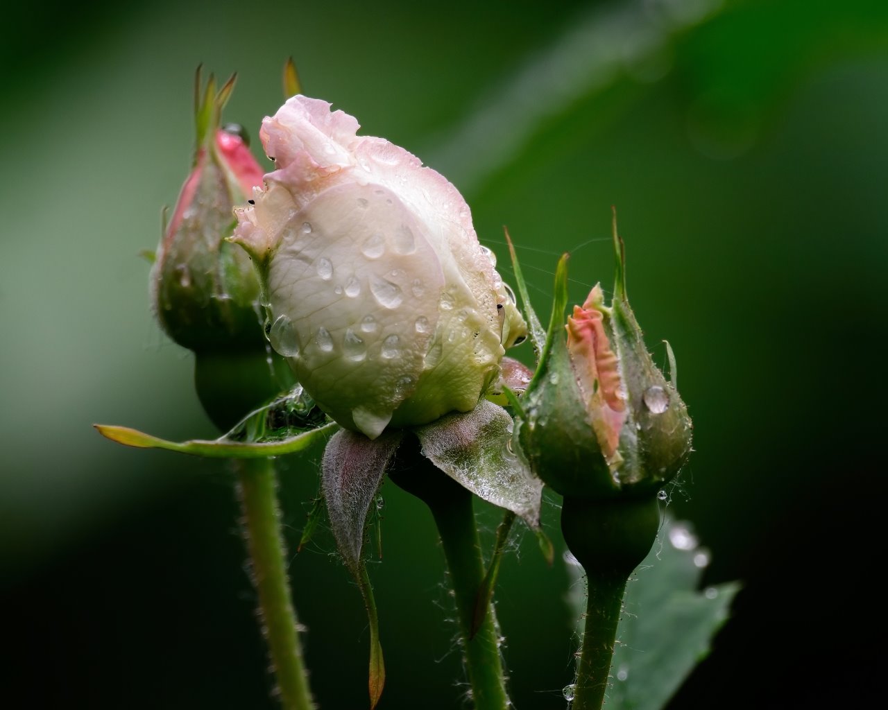 Les fleurs étaient au lever du jour saupoudrées de gouttelettes de pluie